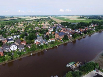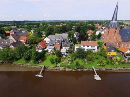 Eigentumswohnung im 4-Parteien-Haus in Steinkirchen. Im Hintergrund die Elbe und das Alte Land in Richtung Hamburg.